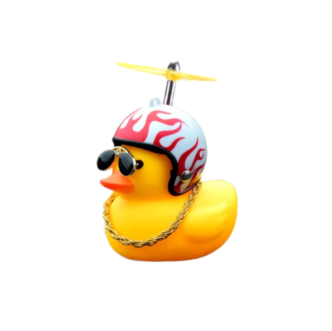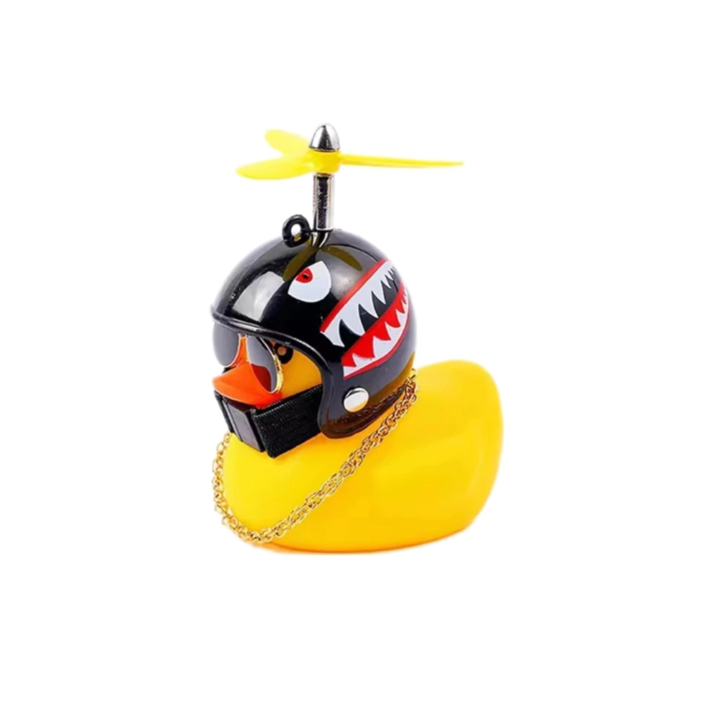 Accesorio decorativo en forma de **pato motero**, ideal para personalizar tu motocicleta con un toque divertido y original. Incluye casco, gafas y propela, dando un estilo único que destaca en cualquier vehículo.